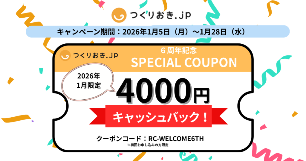 【2026年1月最新】つくりおき.jp クーポンコード 初回4,000円キャッシュバックでお得に始める方法