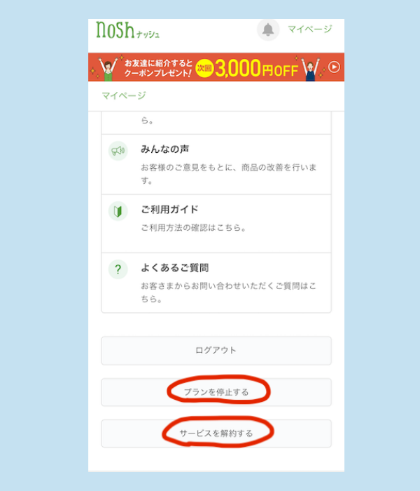 ナッシュには解約・停止・スキップの3つの方法があります。