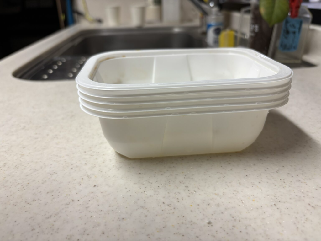 容器は軽くゆすいで重ねてプラごみへ捨てられるので、洗い物が少なくシンクや排水口がいつもより汚れていないのがわかりました。